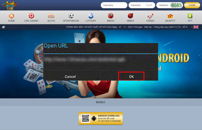 - Open QR Code Reader scan image QR code on the website.